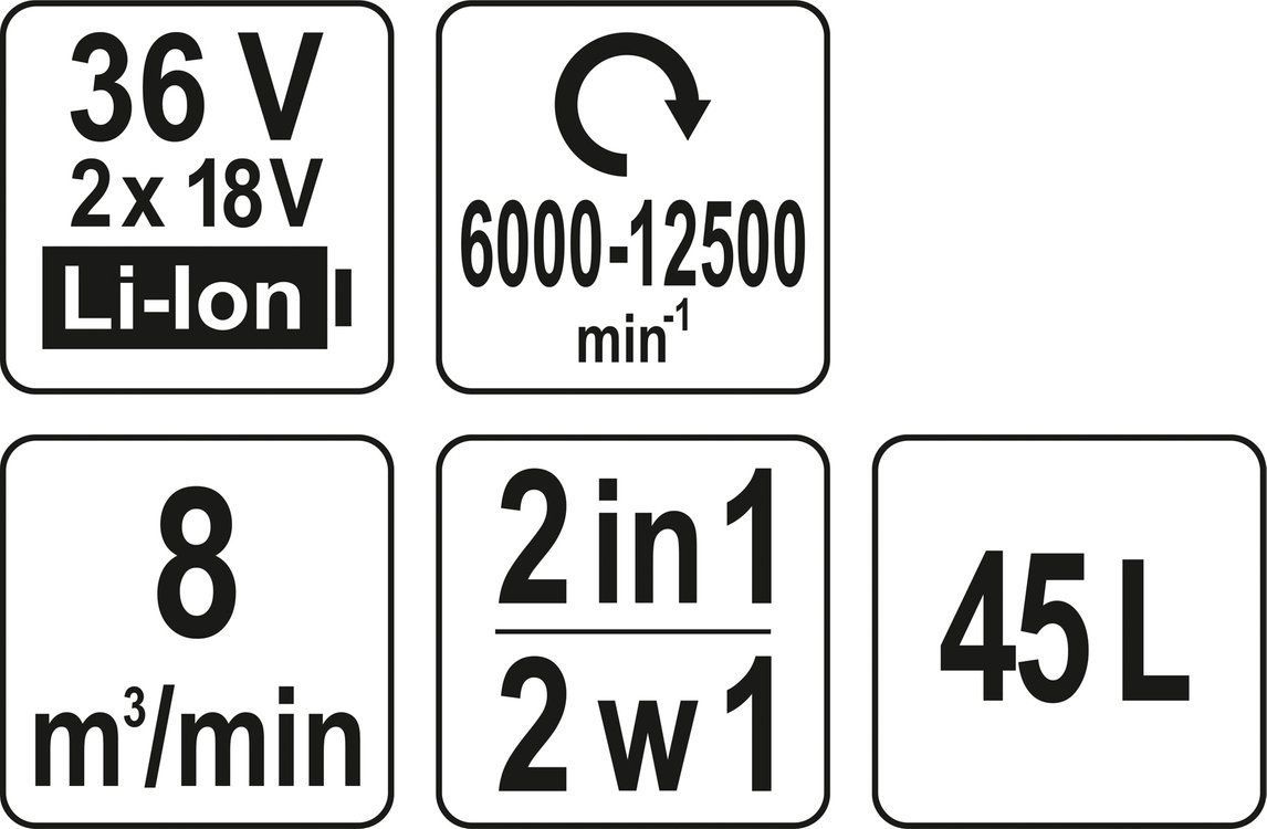 Воздуходувка-пылесос аккумуляторная Yato YT-85175 для листьев