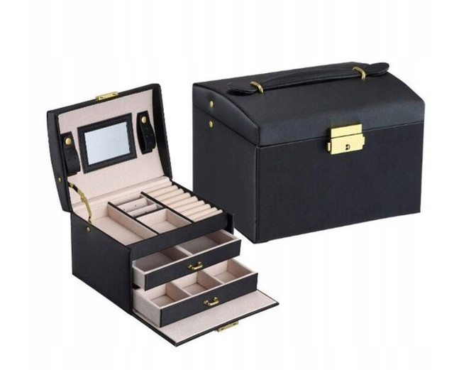Чорний органайзер для зберігання ювелірних виробів із висувними ящиками на замку